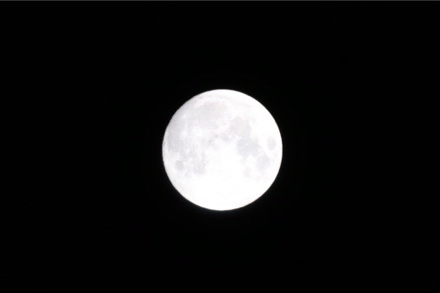 La dernière photo : Je positionne la vitesse de prise de vue à 1/4000e /s, je mets l’ouverture à la meilleure luminosité possible à F/2.8 : La lune est figée et nettement plus contrastée !