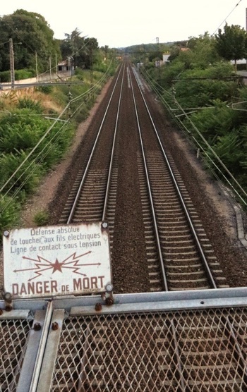 « Une longue voie ferrée sans fin avec un panneau qui fait peur ! »