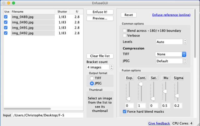 Traitement dans le logiciel gratuit « EnFuseGUI ».