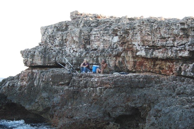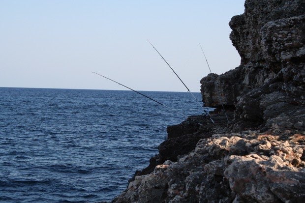 Majorque (Espagne) : des pêcheurs et leurs cannes à pêche (photo centrée, très banale).