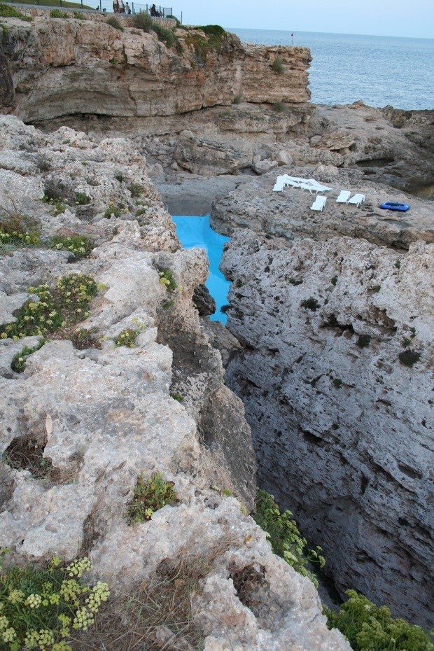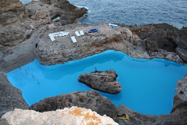 Majorque (Espagne) : une piscine d’eau de mer en contre-bas (aucune impression de hauteur).
