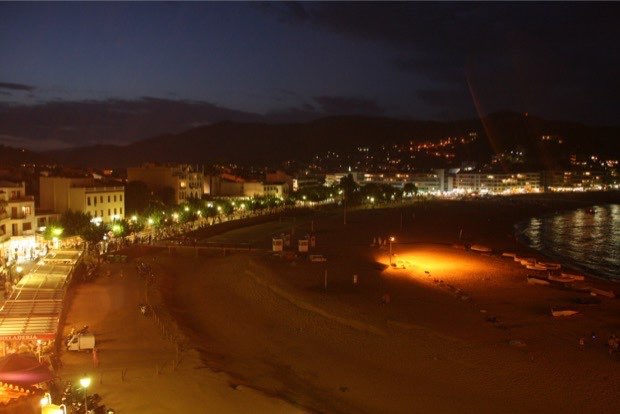 Tossa de Mar (Espagne) : La plage vue des fortifications du château.