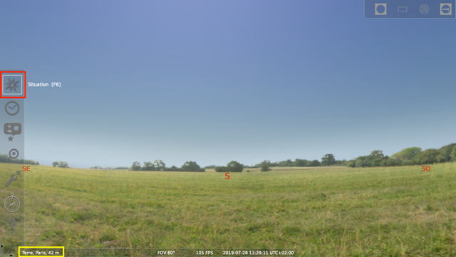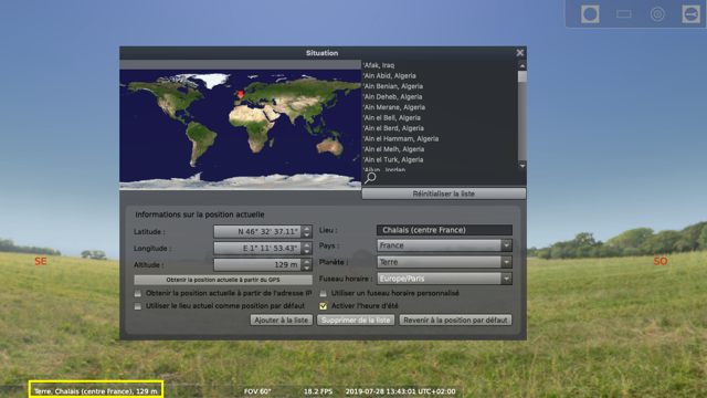 Lancez « Stellarium» et choisissez votre situation géographique |F6].