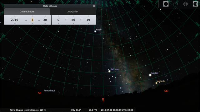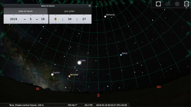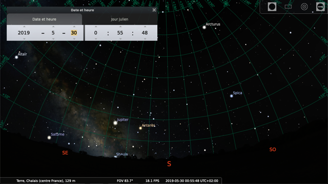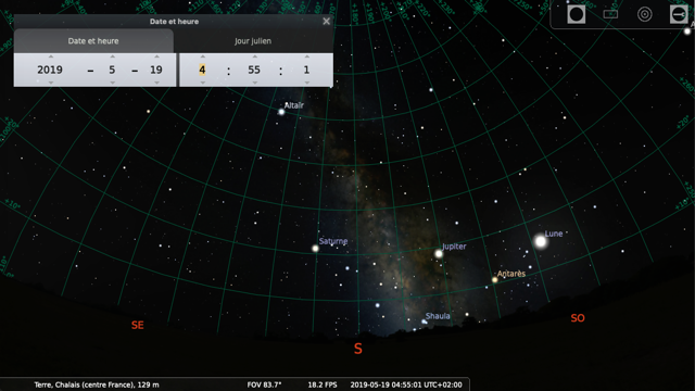 Par contre à la date du 30 mai 2019, la lune n’est plus dans le champ de vision !
